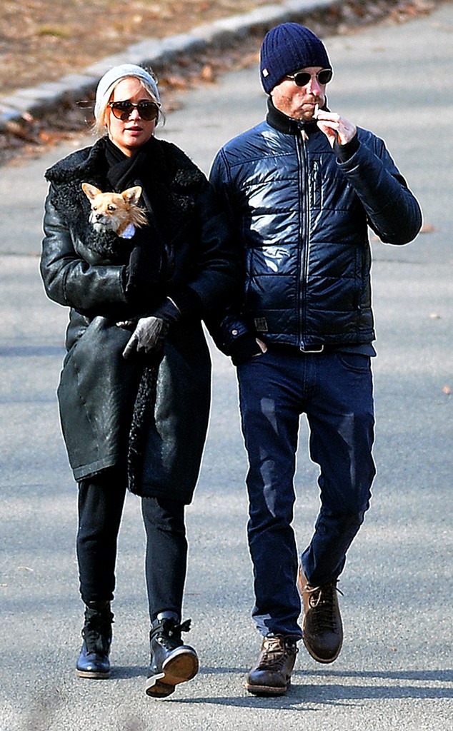 jennifer aronofsky lawrence darren nyc december celebmafia split popsugar pouch genesis calfskin sneakers dior wang alexander wearing bag couple.